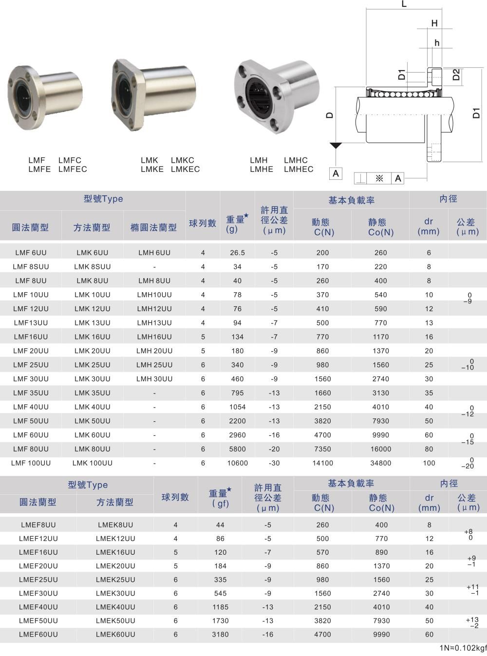 產品名稱:LMF-UU/LMK-UU/LMH-UU