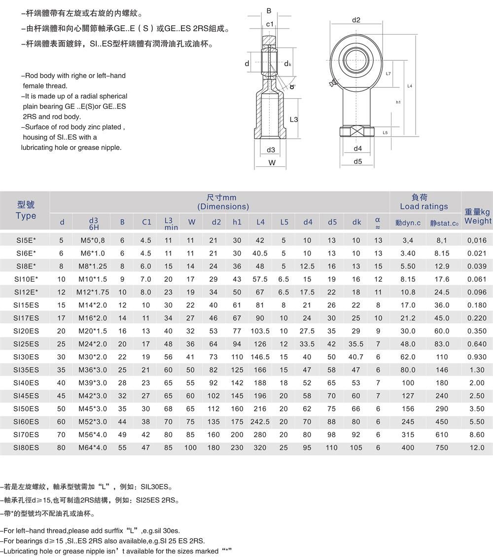 產品名稱:SI-E/SI-ES桿端關節(jié)軸承