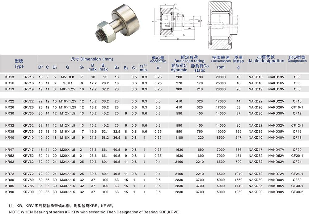 產(chǎn)品名稱:KR螺栓型滾輪滾針軸承
